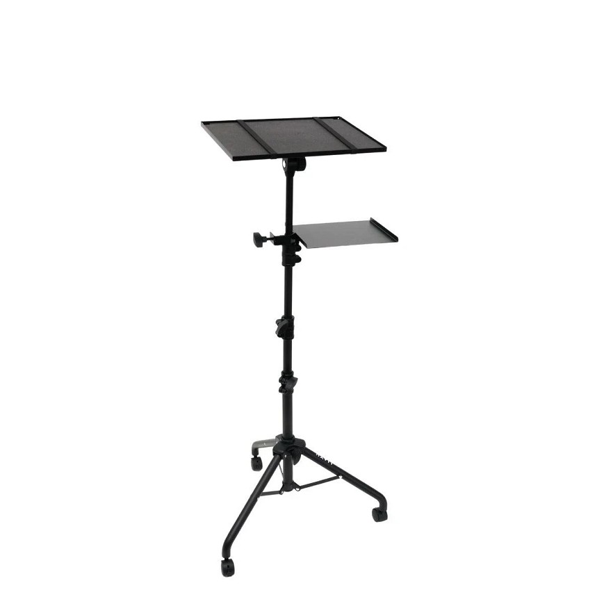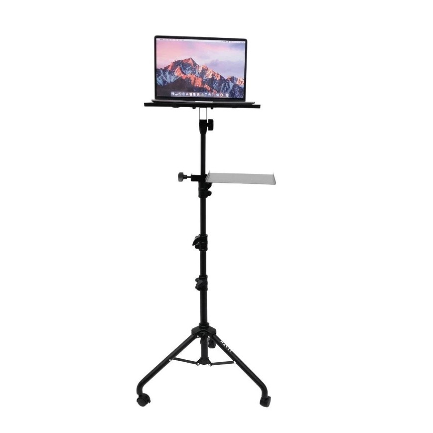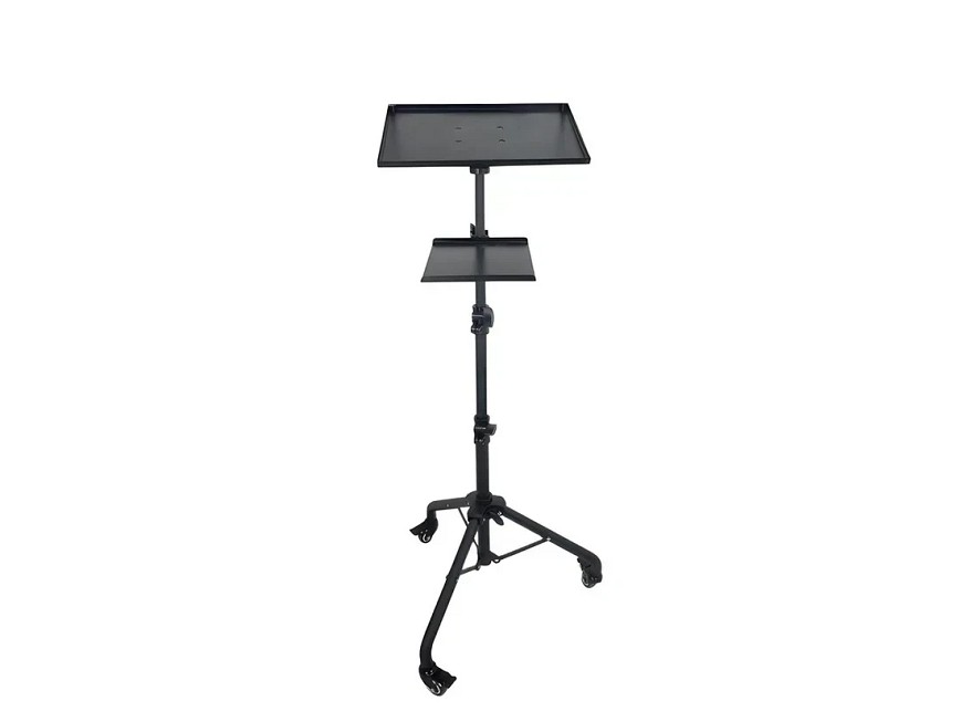 Visina 0.66-1.30m Prečnik cevi 30/25/22/19mm (teleskop) Gornja platforma 38.5x28.5 cm nosivost 10kg Srednja platforma 25x20cm nosivost 5kg ili 2.5 kg po drugom izvoru Materijal Metal + ABS plastika Rotacija 180 gornje ploče ,teleskop podesiv, točkić sa blokadom Prednosti: Veoma prenosivo i stabilno zahvaljujući točkićima sa blokadom – idealno za prezentacije, projekcije ili kampovanje. Veliki prostor za projektor i prateću opremu, pogodan za audio/video biznis setup.