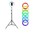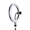 Materijal : metal+plastika(ps) Raspon visine 72cm-210cm Prečnik prstenaste lampe 26cm LED dioda 120 toplih/belih + 48 RGB Režimi osvetljanja : toplo, hladno, neutralno + 10 scena/svetlosnih efekata Držači : elastični silikon u kombinaciji sa spiralnom stegom za stabilno i sigurno postavljanhe mobilnog uređaja